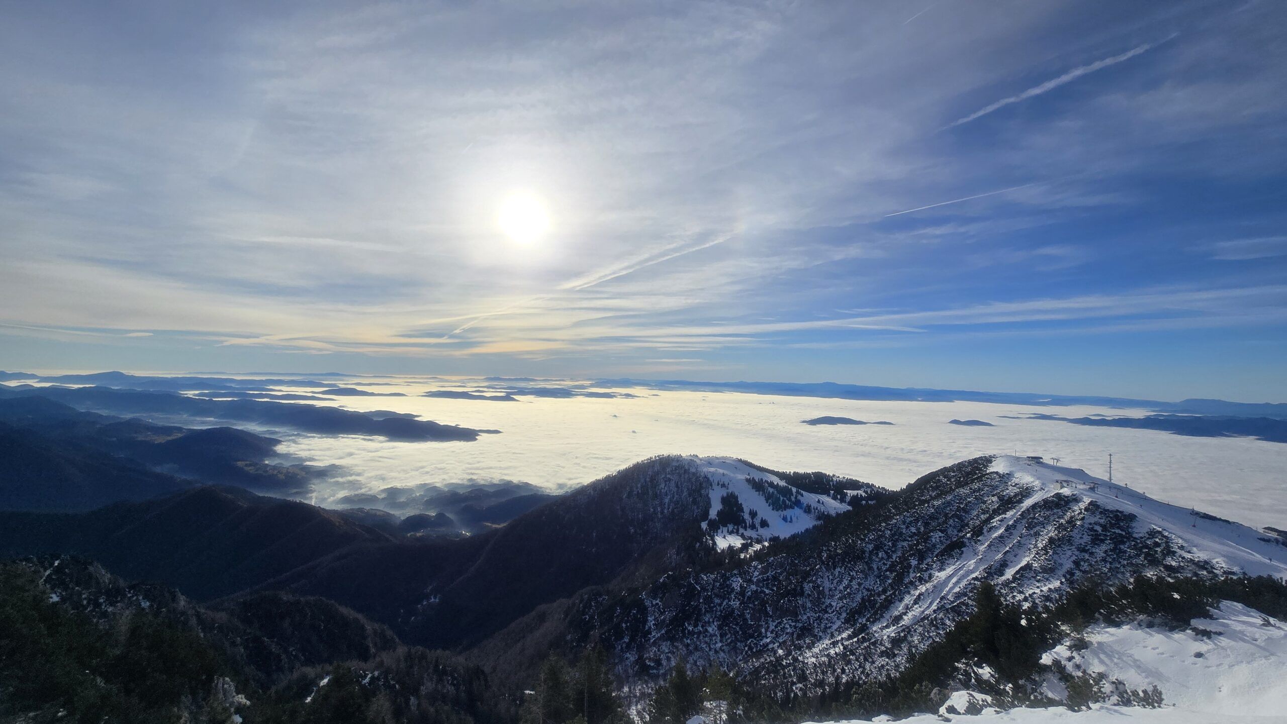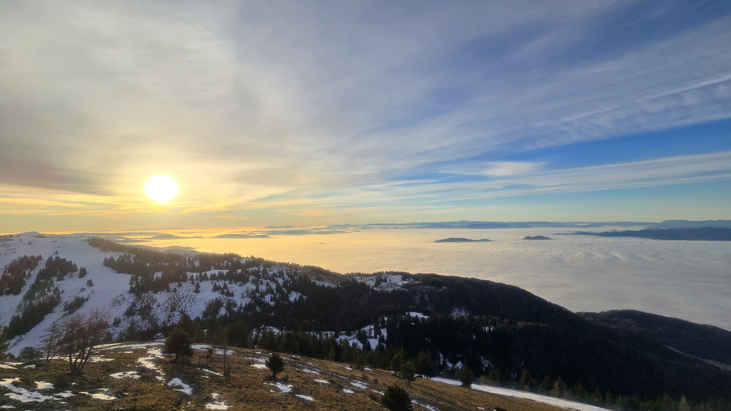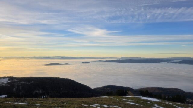Ko so doline pokrite z nizko oblačnostjo, zavite v meglo, gremo poiskat sonce. Le snega je premalo za ta letni čas. Deli s svojimi prijatelji: ← ⭕ 23.-25.11.2025 / Vulkanski stožci