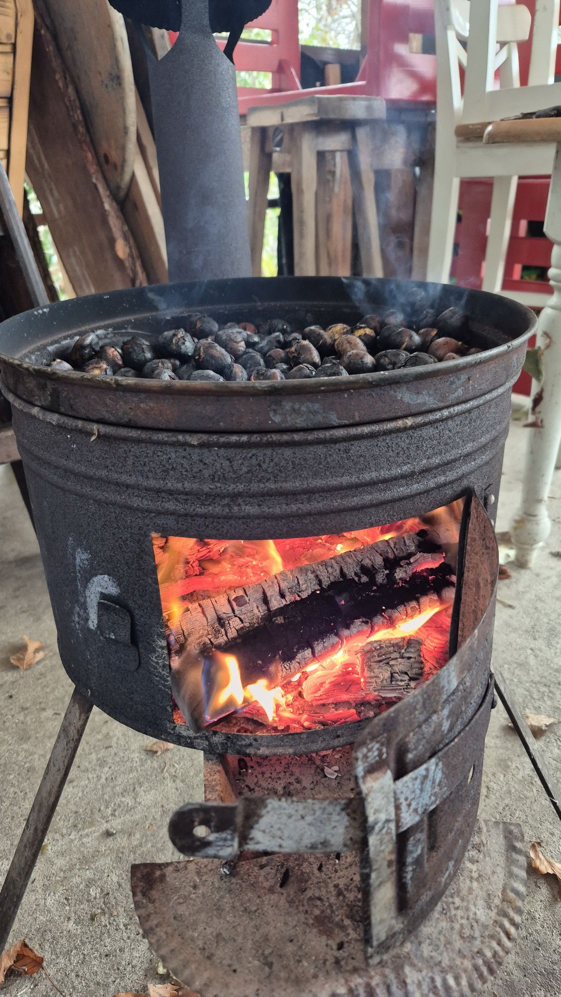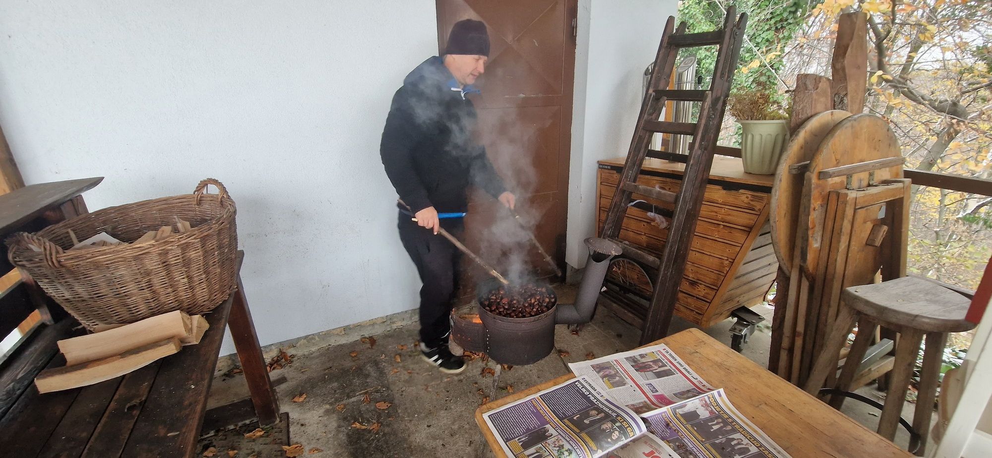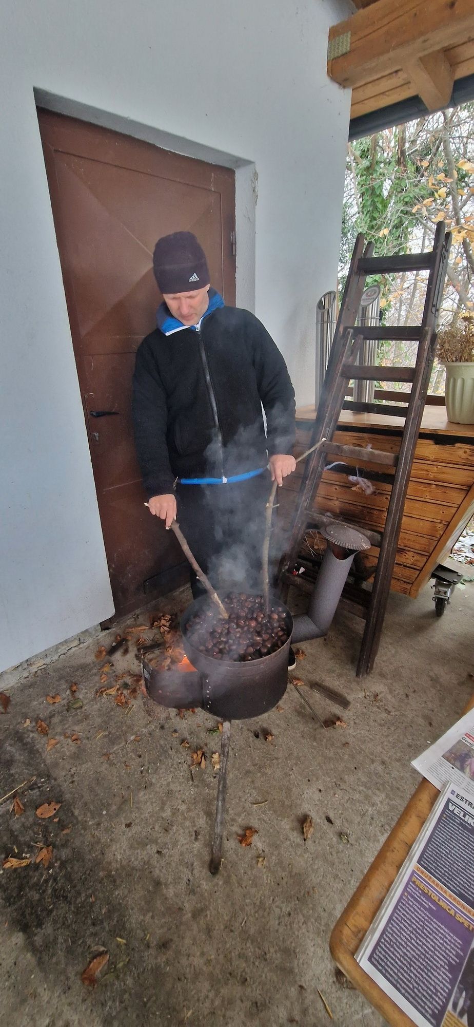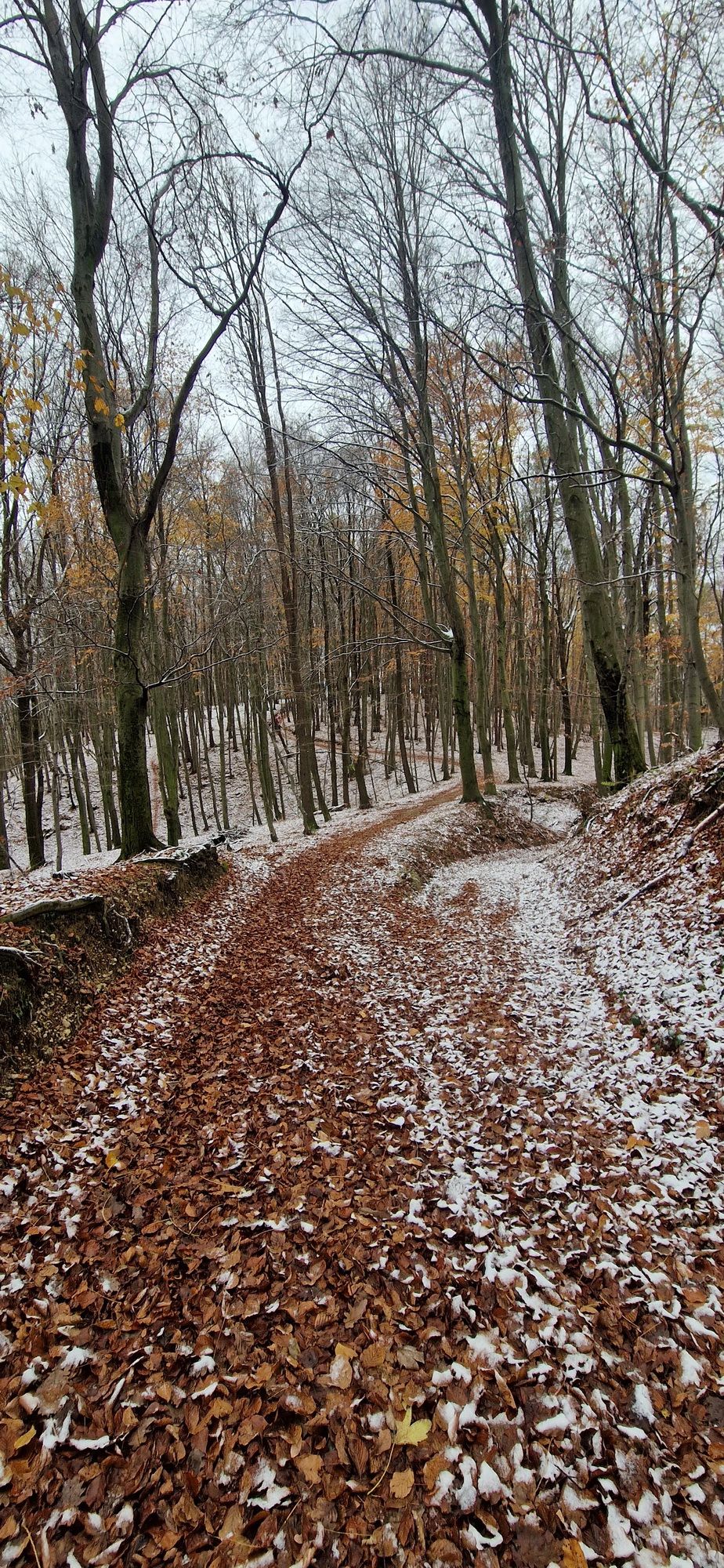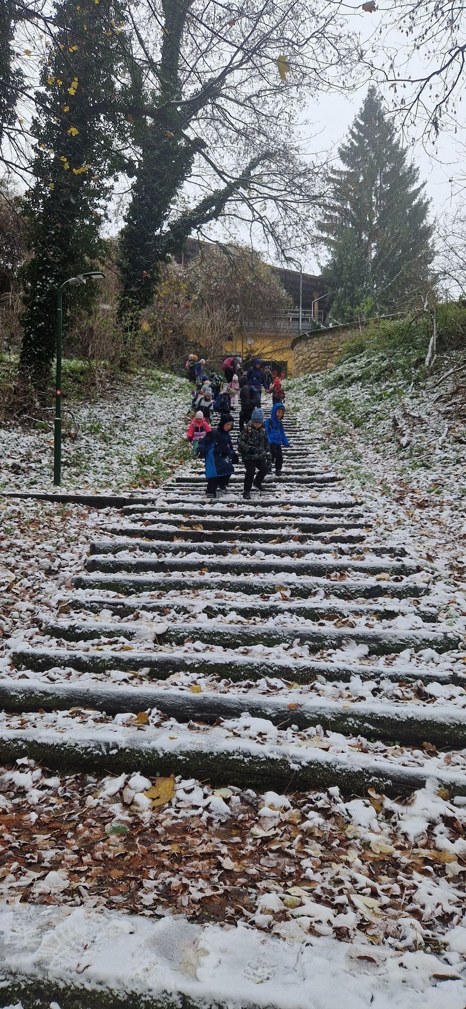 Fotoutrinki s sobotnega, zelo lepega izleta. Upali smo na jesenski izlet, a dobili zgodnje-zimskega. Pozdravilo nas je hladno jutro, a se nismo dali, kmalu smo jo urezali v hrib, se malo zadihali, da nam je postalo toplo in že je bil čas za zajtrk. V ozadju so nas spremljale meglice, a kljub temu smo lahko videli kar daleč, tla so bila rahlo pobeljena, a to nas ni ustavilo, da se ne bi v gozdu tudi poigrali in plezali po strmih hribčkih in koreninah. Kmalu smo prispeli na vrh, kjer smo se z rdečimi lici najprej odpravili na toplo in se konkretno pogreli pri Hudi Lizi. Tudi prigriznili smo, kar je še ostalo. Zunaj pa se je že razplamtel ogenj, kjer so se pekli kostanji. Odpravili smo se na pokušino poznojesenskih kostanjev in uživali v igri na snegu in kepanju. Otroci so res uživali in zelo luštno jih je bilo opazovati v spontani igri. Narava je resnično najboljše igrišče.